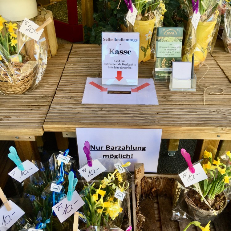 Now I can “travel” online and stay plugged into the local reality of Zurich neighborhood at the same time. I’ve realized there are also easy ways to be part and support the local community, for example by eating my absolutely favorite ice cream from Rosso Arancio and chocolate from La Flor – isn’t this just wonderful? Or just going to the small shops in the neighborhood that are still open