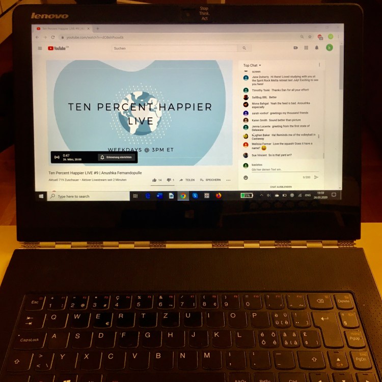 Suddenly I can “travel” again to Sevilla where I’ve discovered Karmuka Yoga, yoga classes based on the alignment principles (a new concept for me!) and doing wonders for the aches and pains in my back and shoulders (not yet live but already with some videos on Facebook, in Spanish). Maybe soon I’ll “go” to the UK for the macrobiotic cooking courses that I wanted to do since long time. I hope also to “be” soon in Ireland as I’ve learned that Selina, a yoga instructor whom I’ve met in Sri Lanka, will be soon launching online classes too. I also enjoy “traveling” every evening to the US for a meditation session with Ten Percent Happier